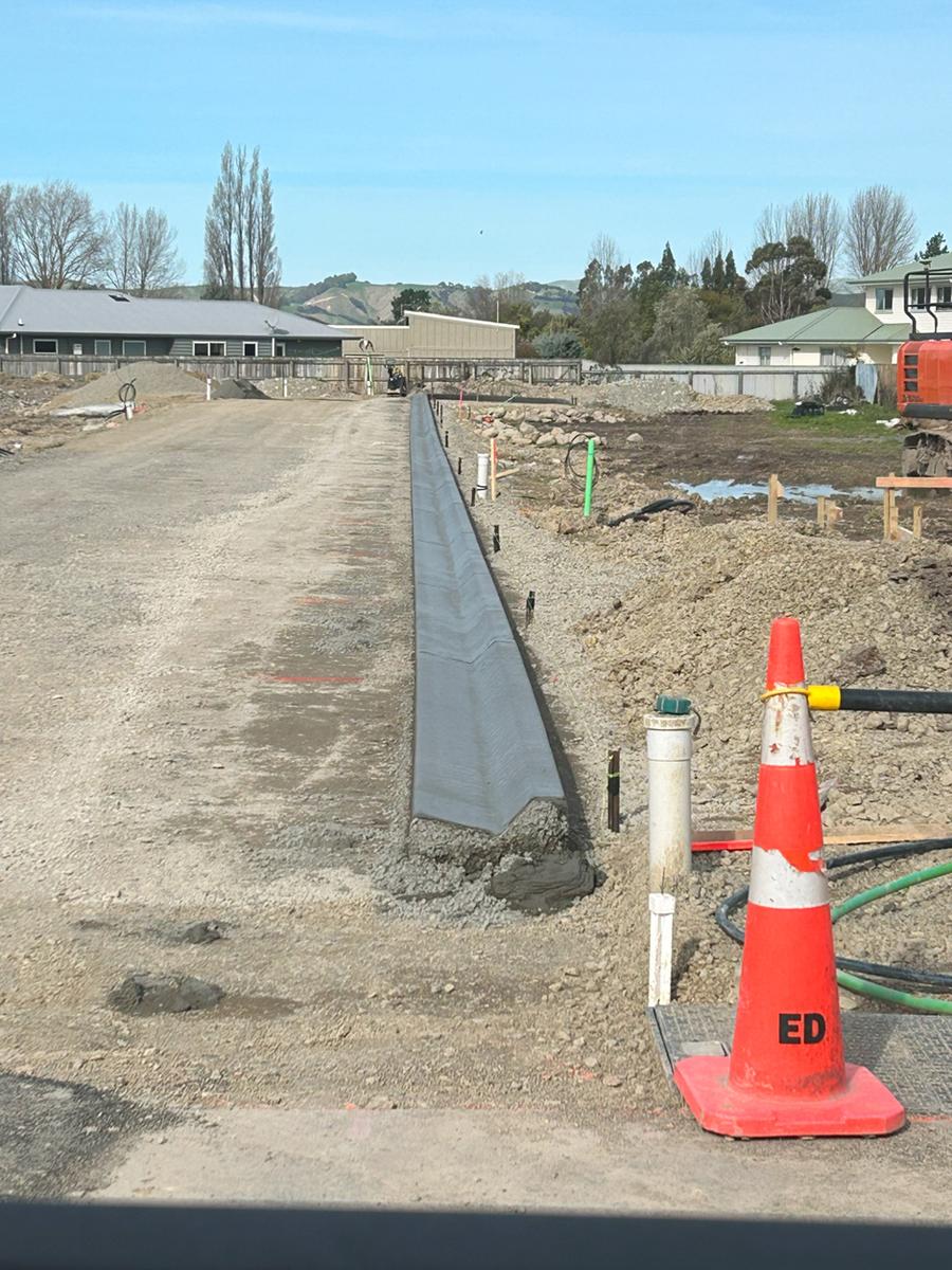 Full control over delivery gave the developer greater certainty across programme, quality, and compliance at this 24-lot residential subdivision on South Road in Masterton. The project was delivered from greenfield stage through to final council sign-off, with Elite responsible for all three waters infrastructure, power, telecoms, stormwater soakage systems, kerbing, swales, and French drains. Only surface finishes such as concrete and asphalt were subcontracted, reducing the number of parties involved and minimising coordination risks. The site presented stormwater challenges due to varied ground heights and overland flow paths. Elite worked closely with the consulting engineer, CFP, to manage these constraints. Hold points were confirmed early and survey tolerances were strictly monitored. Finished levels were achieved to within 30 millimetres across the subdivision, meeting all engineering and council expectations.